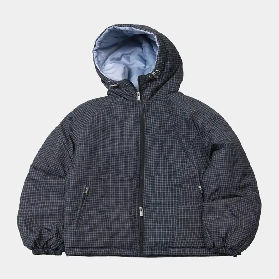 SOME PLACE 체크 후드 자켓 더블 지퍼 블랙