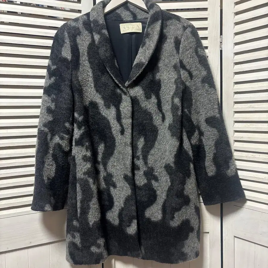 KRIZIA 카모플라쥬 패턴 울, 알파카 체스터 코트 42