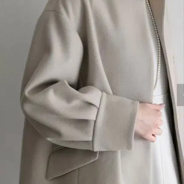 입체적인 슬리브가 포인트인 미들 기장 코트입니다.