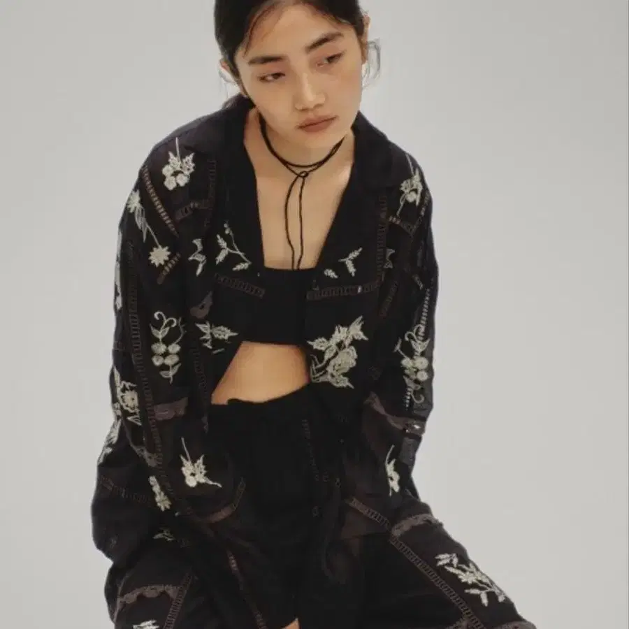 Embroidery Patchwork Shirts 블랙