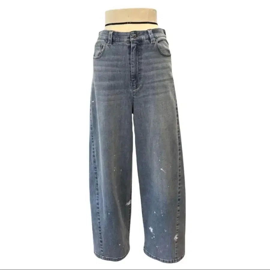 ayane 페인트 가공 배럴 레그 데님 팬츠