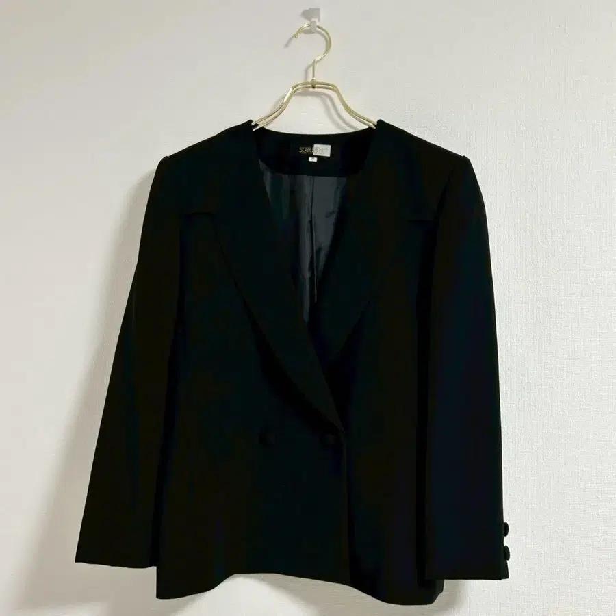 심플한 블랙의 더블 브레스트 테일러드 자켓.