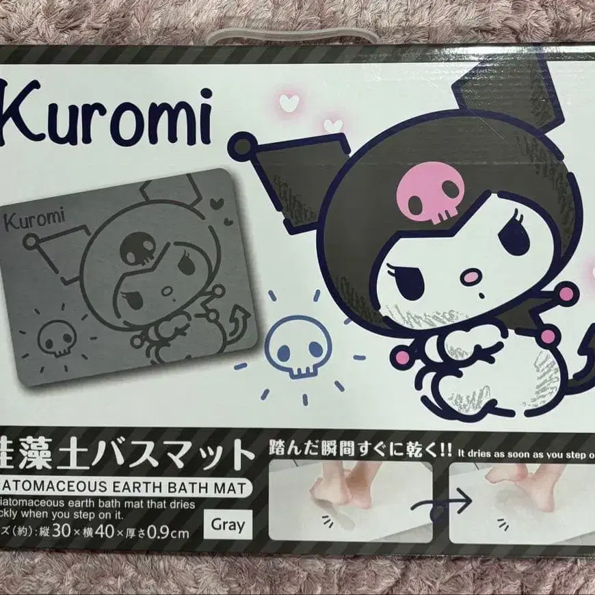 산리오 쿠로미 Kuromi 규조토 욕실 매트 그레이 30 x 40cm