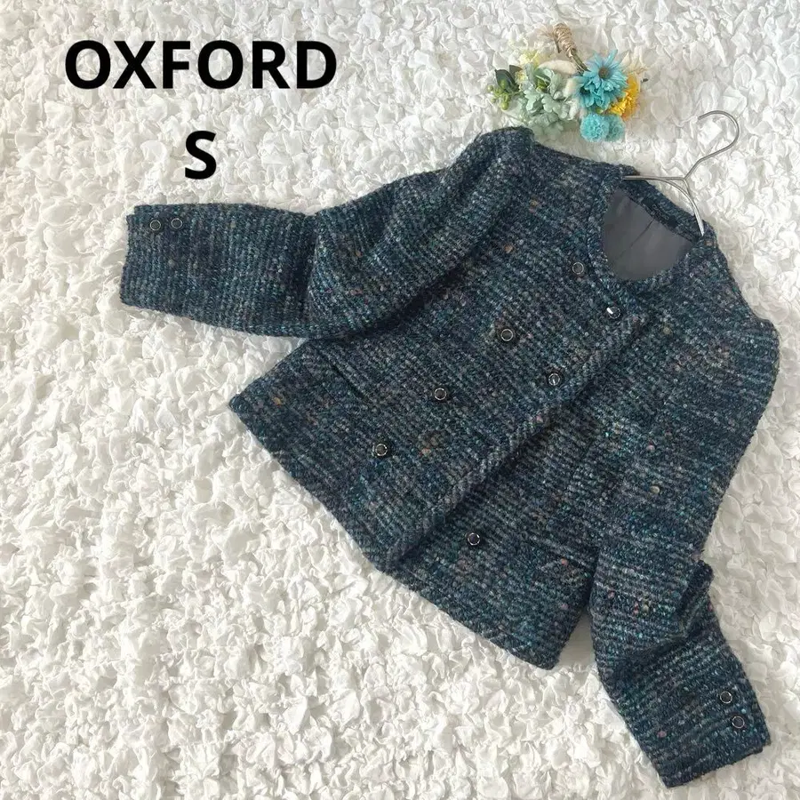 OXFORD QUINCY 트위드 노카라 자켓 모헤어 혼방 파워 숄더 S 상당 골드 버튼 졸업식 입학식 오피스