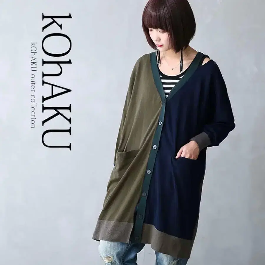 kOhAKU 롱 가디건 카키 믹스 택 포함 미사용 새상품