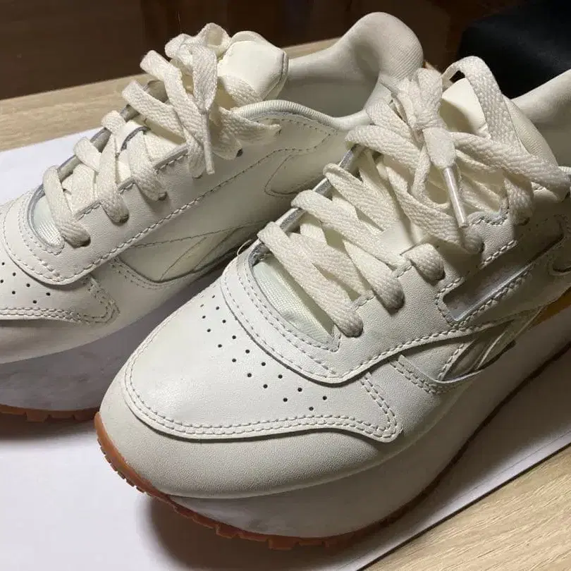 중고품 Reebok 통굽 스니커즈 화이트/골드 23.5cm