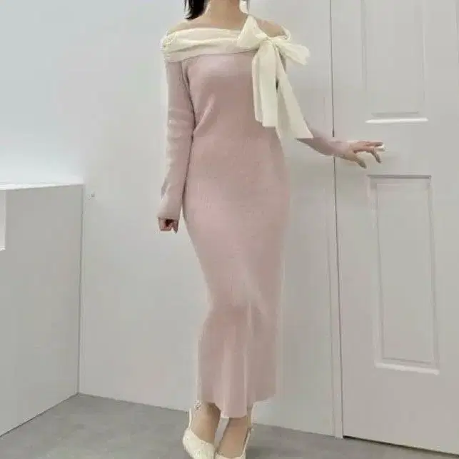 dazzlin 볼륨 아지메 리본 니트 원피스 퍼플