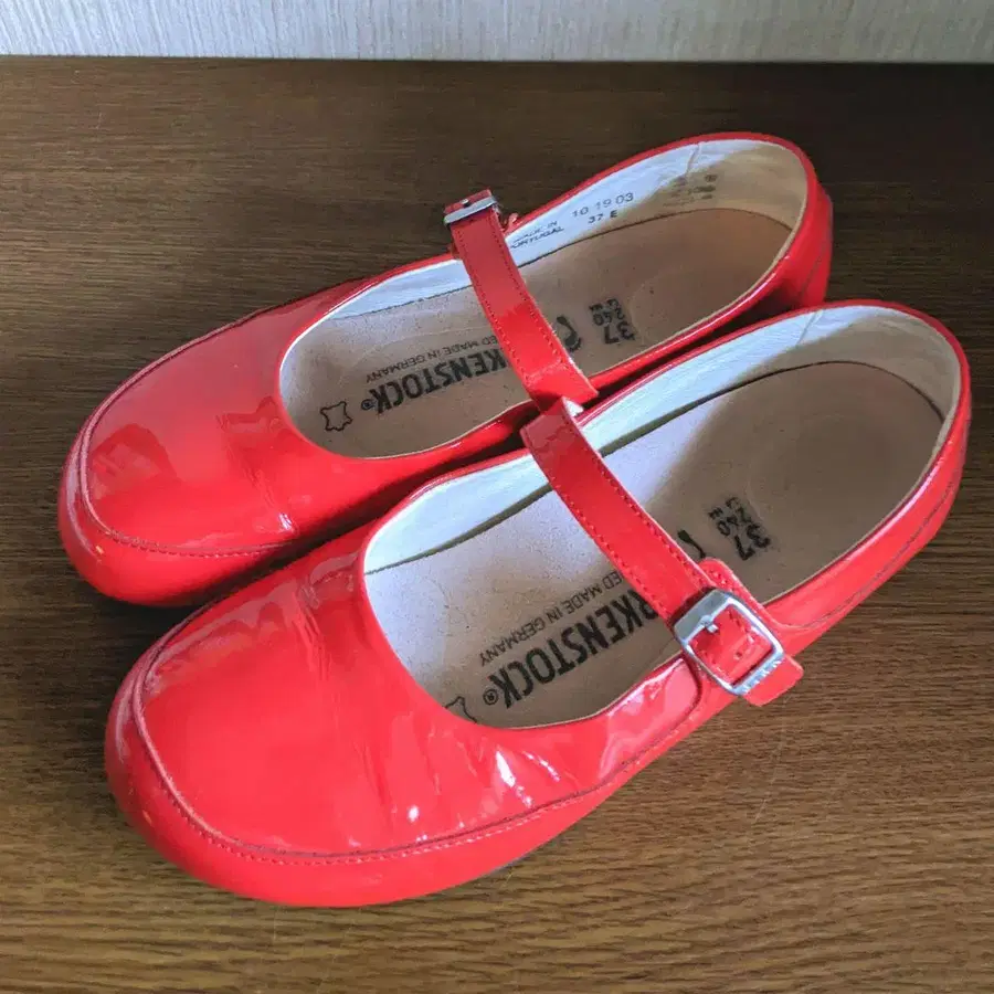 BIRKENSTOCK 빨간색 에나멜 스트랩 슈즈 빌켄 슈토크
