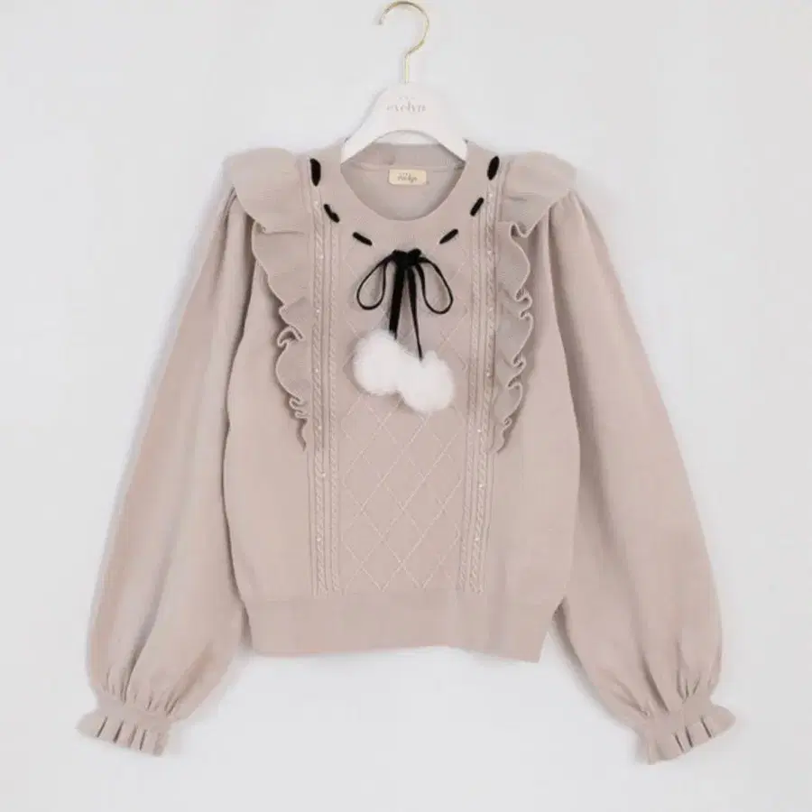 [ 택 포함 미사용 새상품 ] evelyn 퍼 리본 프릴 니트 핑크