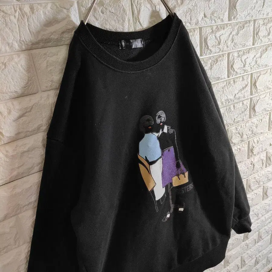 [ 90s 레트로 프린트 ] 맨투맨 트레이닝복 L 블랙