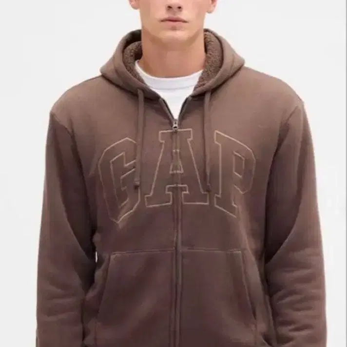 GAP 로고 보아 안감 집업 후드티 브라운