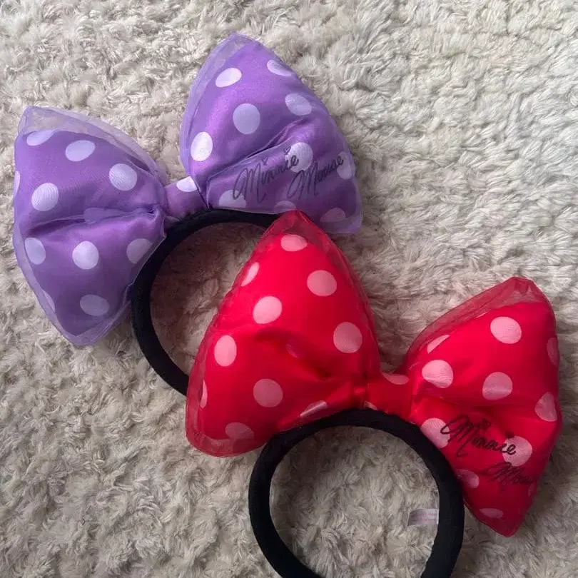 미니 리본 머리띠 빨간색 보라색