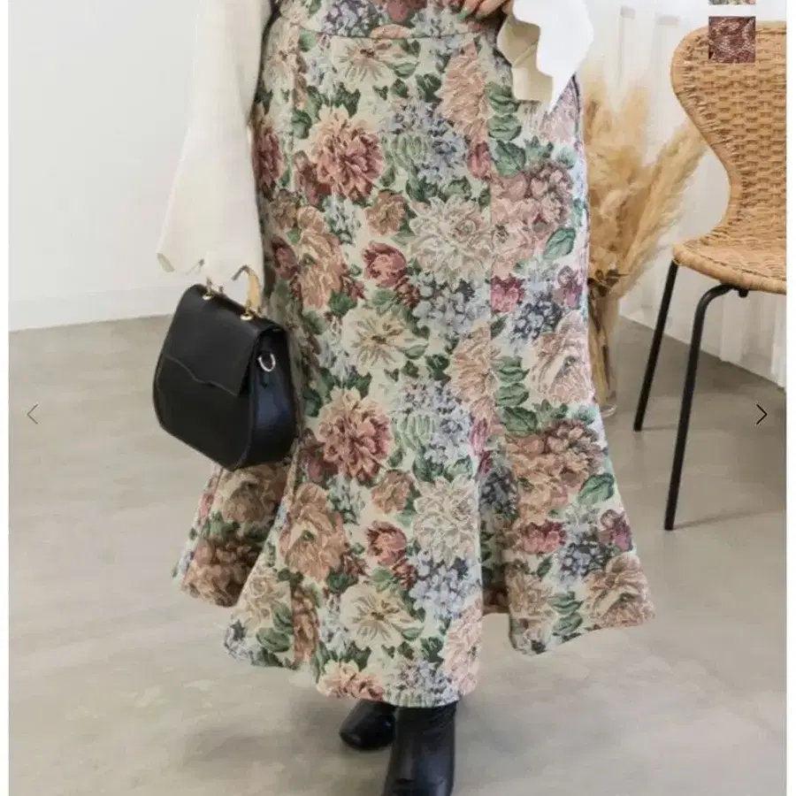 쿠레트 택 포함 미사용 새상품 고블랑 머메이드 스커트 꽃무늬 플레어 LL