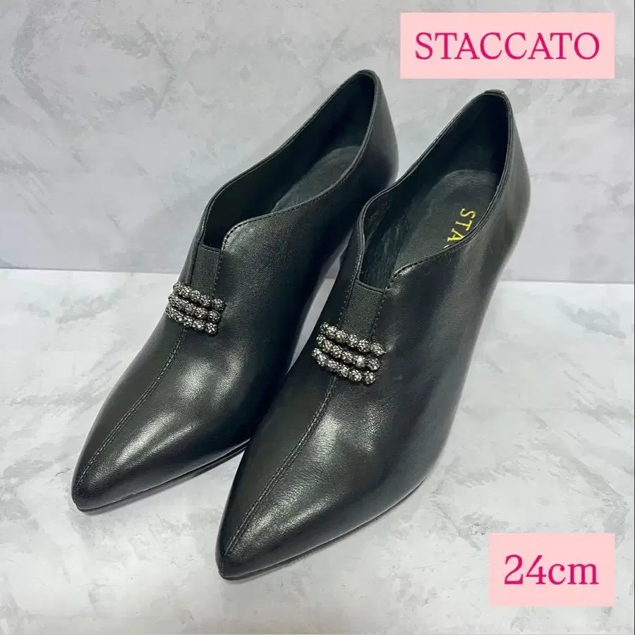 미사용급 STACCATO 스틸레토 사이드 고어 부티 블랙 24