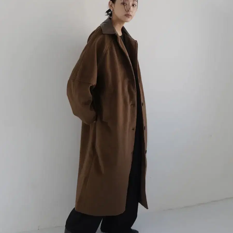 • 인조 가죽 롱 코트 오버 사이즈 vacancy 스탠드넥