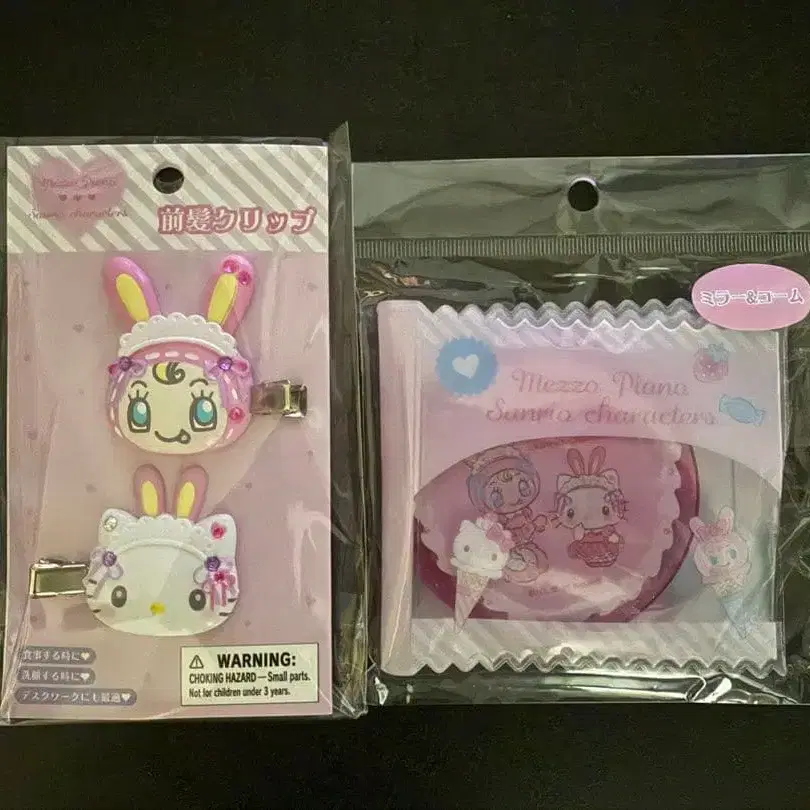새상품 산리오 x 메조 피아노 키티 & 베리에 클립 거울 & 빗