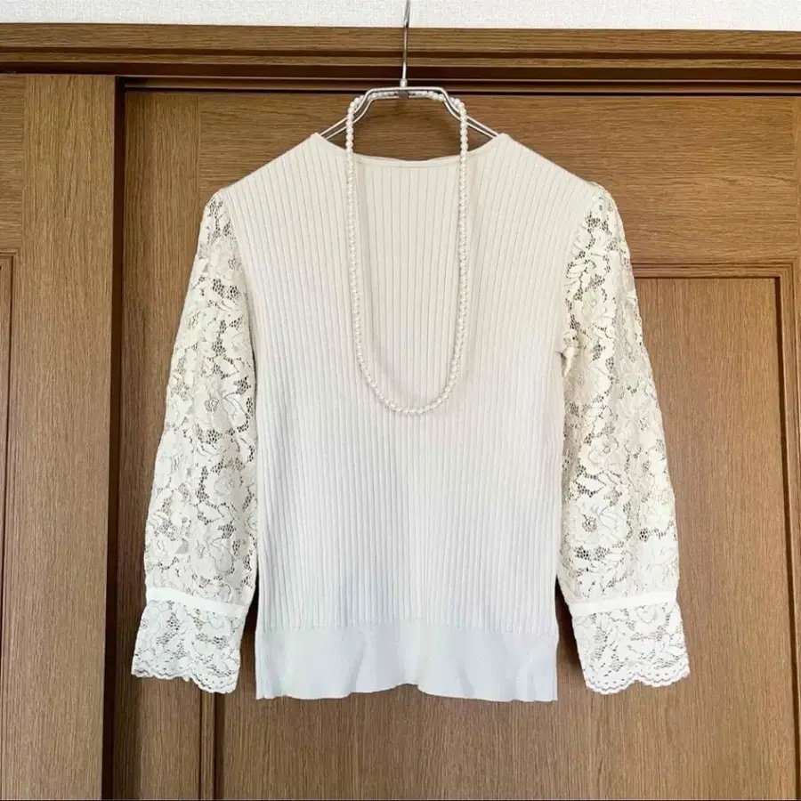 아나텔리어 anatelier 니트 베이지 소매 레이스 아이보리