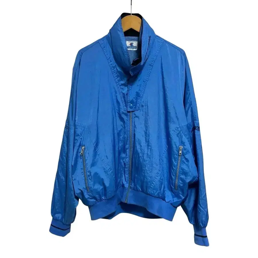 O 80s Champion 나일론 자켓 블루 후드 부착 일본제