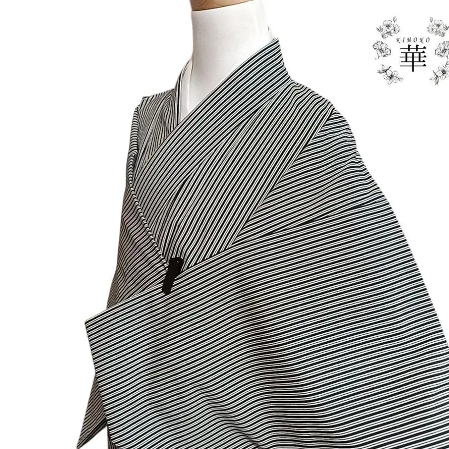 810 하나 기모노 워셔블 기모노 코몬 줄무늬 화이트 블랙