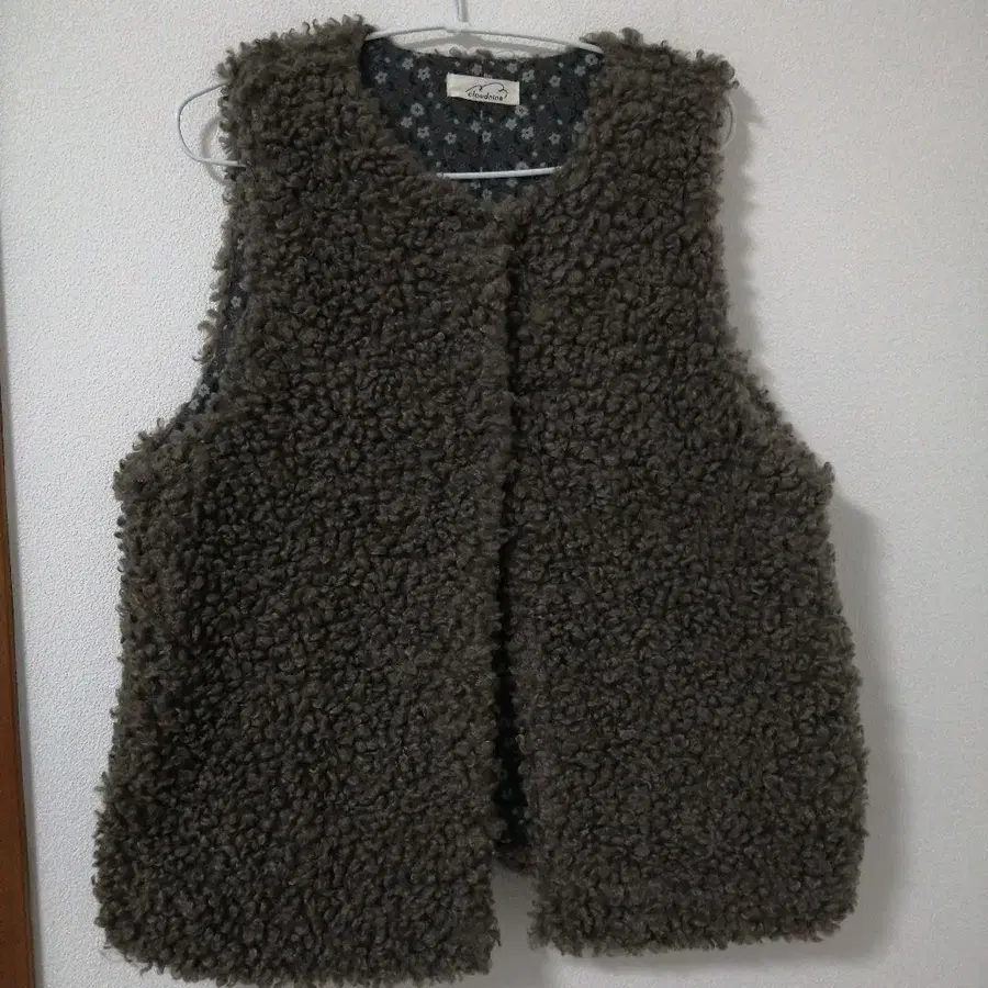 플리스 브라운 베스트 꽃무늬 안감 부착