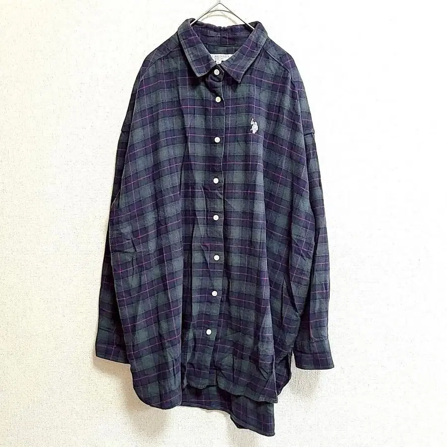 유에스폴로아순 셔츠 면 100% 네이비 그린 체크 무늬 3L