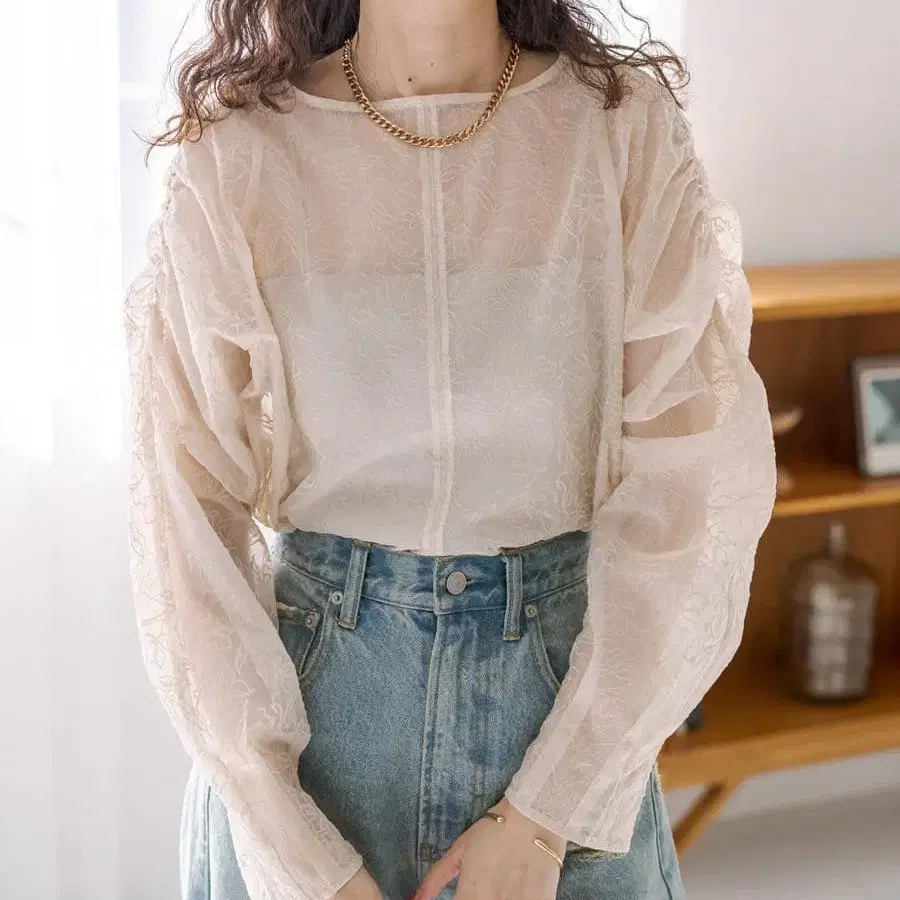 mystic 시어 퍼프 슬리브 블라우스 베이지