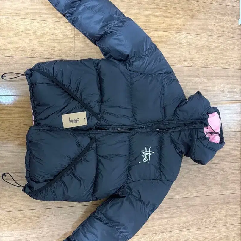 다운 자켓 후드 부착 블랙/핑크