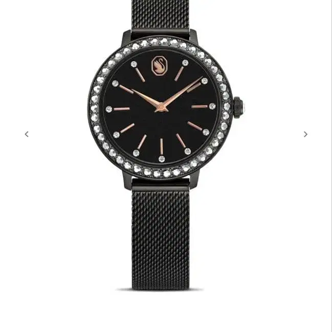 어떤 스타일에도 악센트를 더하는 창의적인 디자인의 Certa 워치입니다. 블랙 코팅된 라운드형 30mm 스테인리스 스틸 케이스에는 베젤에 30개의 블랙 크리스탈이 파베 세팅되어 있습니다. 미네랄 유리 아래 펼쳐지는 블랙 다이얼에는 12시 위치에 Swarovski 스완 로고, 인덱스에는 라운드 컷 크리스탈을 세팅했습니다. 워치의 크라운에도 싱글 크리스탈을 더했으며, 손목을 스타일리시하게 장식하는 블랙 코팅 스테인리스 스틸 밀라니즈 팔찌가 포함되어 있습니다. 50m 방수 기능을 갖추고 있어 매일의 모든 장면에 세련된 빛과 정확한 시간을 선사합니다.