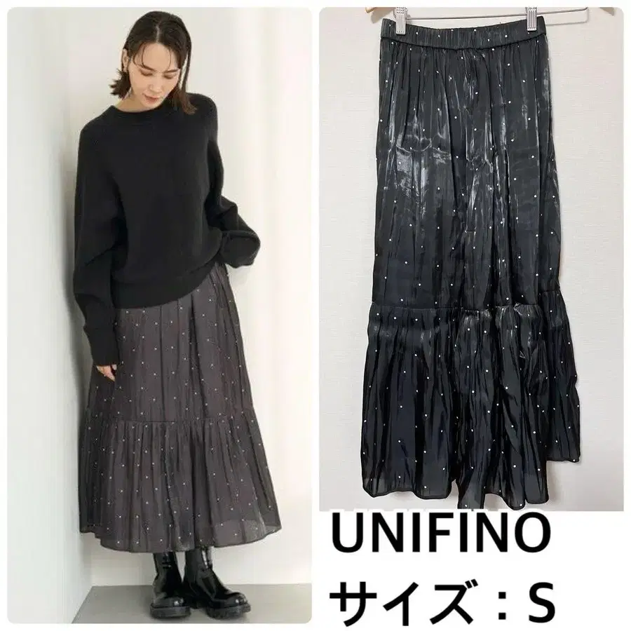• UNITED ARROWS 시어 플레어 스커트 도트 롱 블랙 블랙 화이트