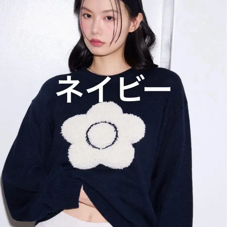 마리콴트 소라 플라워 모티브 아트 자카드 니트