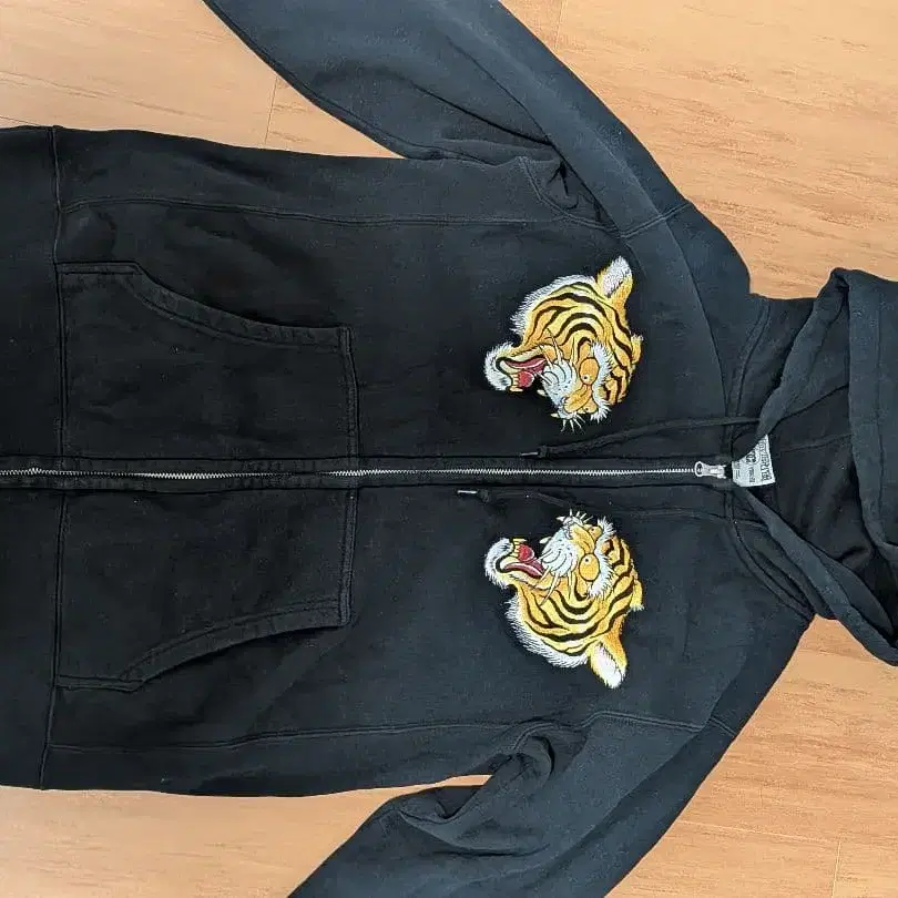 레어 코어 파이터 블랙 호랑이 자수 후드티