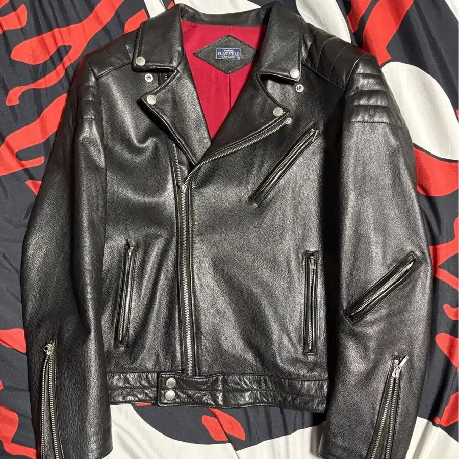 FLAT HEAD 블랙 가죽 더블 라이더 자켓
