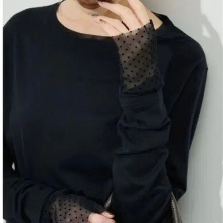 슬로브 이에나 레이어드 플로키 도트 슬리브 롱TEE