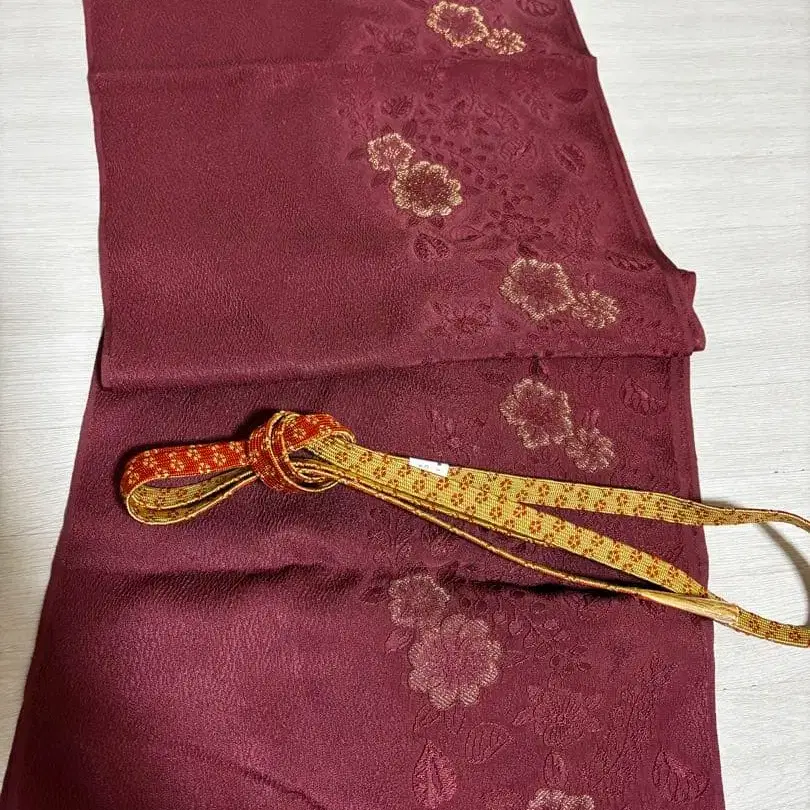 단고 크레이프 원단 츠지 가하 꽃 허리띠 오비 장식 천 세트