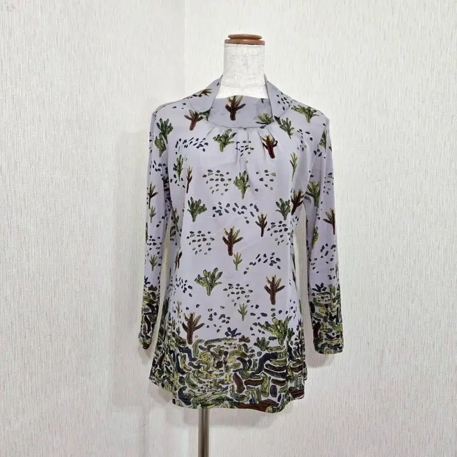 자연을 모티브로 한 올 패턴 디자인이 개성 있는 긴팔 셔츠. 옷깃에는 턱이 들어가 입체적인 디자인으로. 밑단 디자인 절개도 특징적이며, 하나만으로도 멋스럽게 연출됩니다. 얇고 가벼운 폴리에스테르 소재로, 봄부터 가을까지 활약하는 아이템입니다.