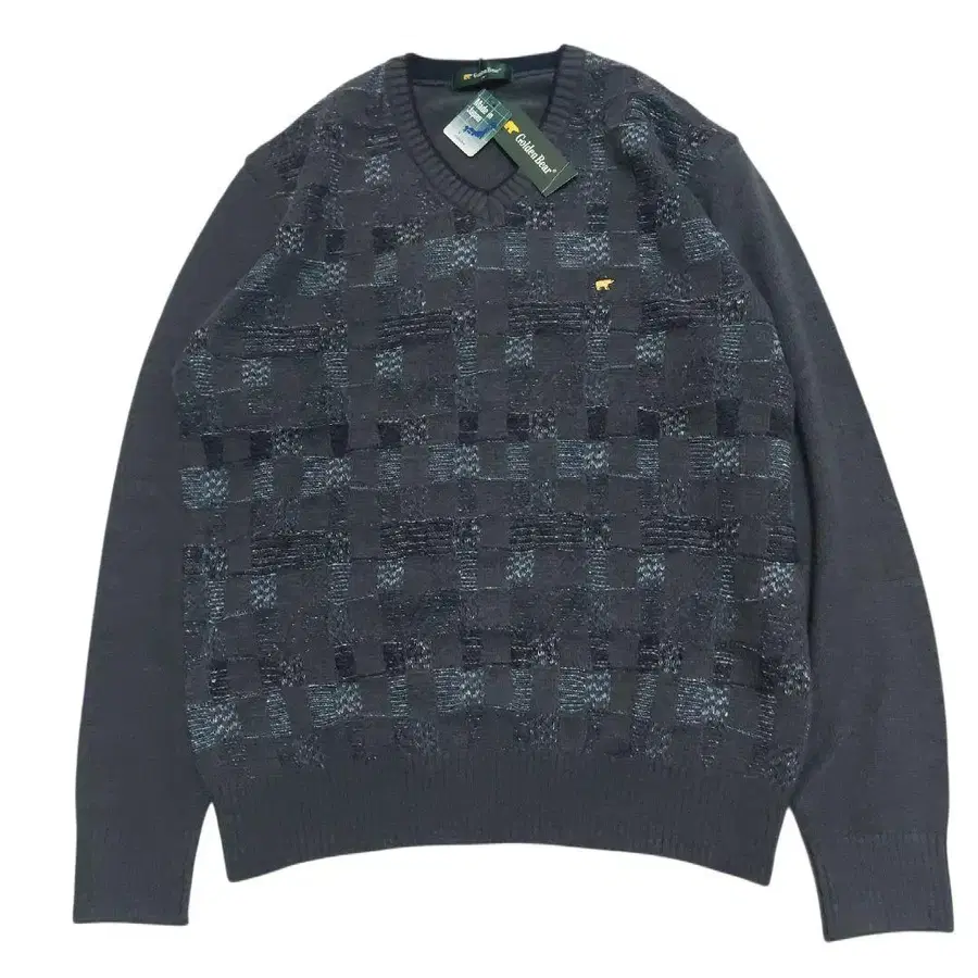 [ 미사용 ] Golden Bear 다크 블루 체크 무늬 니트 스웨터