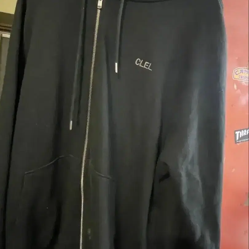 CLEL 블랙 더블 지퍼 후드티 블랙 M