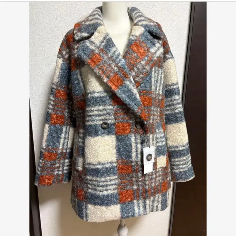 아프레트로 오버사이즈 링 보아 체크 무늬 코트 새상품 체스터
