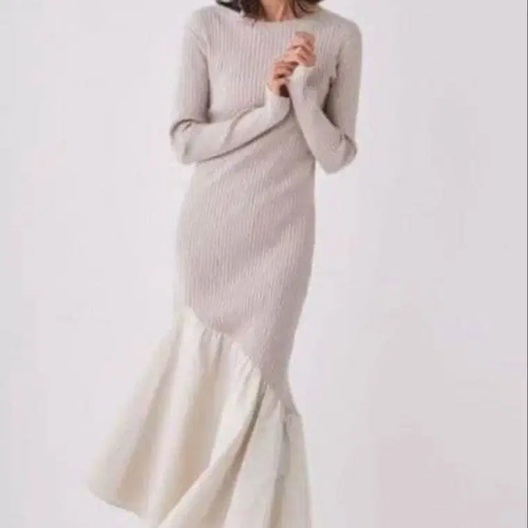 FRAY I.D 비대칭 절개 리브 니트 콤비 원피스
