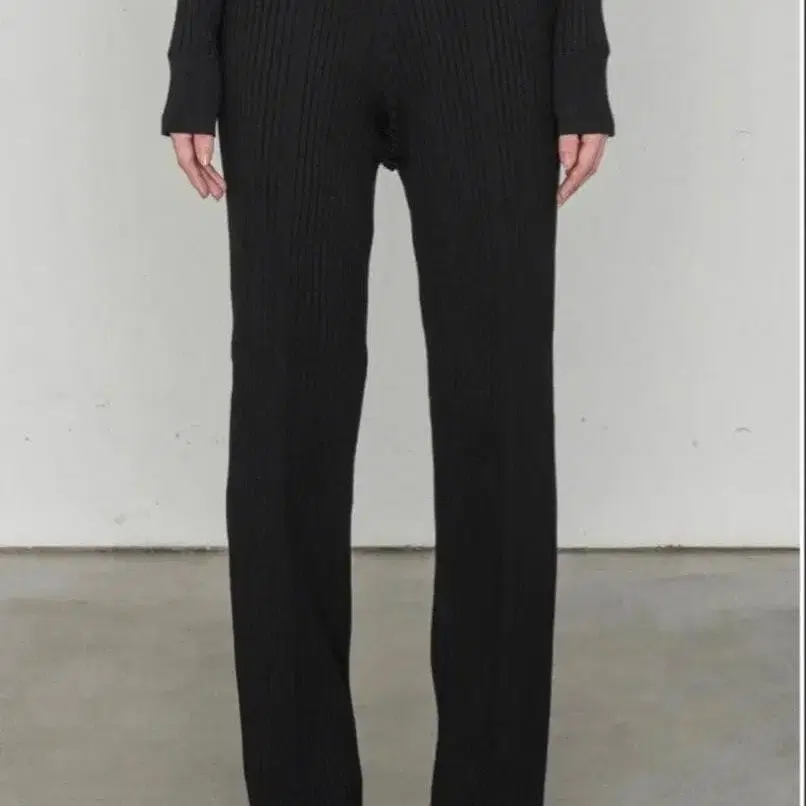 [ 미사용급 ] HYKE 와이드 리브 스웨터 팬츠 블랙 울 사이즈 1