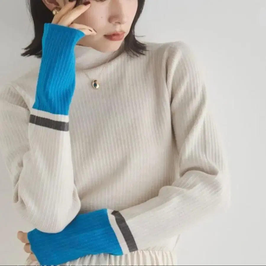 [택 포함 새상품] 야와모치얀 배색 하이넥 리브 니트 베이지 계열