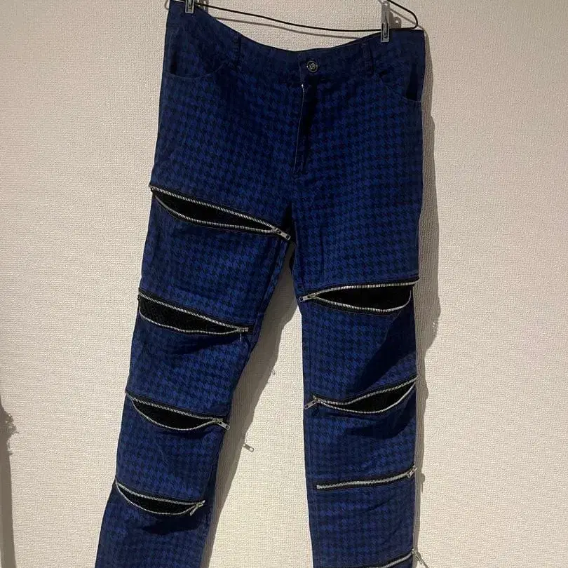 상품 설명 수많은 상품 중에서 방문해 주셔서 감사합니다! 프론트에 다수의 지퍼가 장식된, 매우 임팩트 있는 하운드투스 패턴의 팬츠입니다. 지퍼를 열면 메쉬 소재가 보이는 사양으로, 펑크, 락, 모드 스타일을 좋아하시는 분들께 딱 맞는 아이템입니다. [ 상품 특징 ] • 디자인: 선명한 블루와 블랙의 하운드투스 패턴. • 디테일: 양쪽 다리에 총 8개의 지퍼가 배치되어 있으며, 개폐를 통해 실루엣이나 표정을 바꿀 수 있습니다. • 스타일: y2k 패션이나 스트릿 스타일에도 잘 어울립니다. [ 사이즈 ] (평평하게 놓았을 때 실측) ※ 개인 측정으로 인해 약간의 오차는 양해 부탁드립니다. • 허리: 약 43cm • 밑위: 약 25cm • 인심: 약 74cm • 허벅지 폭: 약 28cm • 밑단 폭: 약 19cm [ 상태 ] • [예: 눈에 띄는 흠집이나 얼룩 없음 / 약간 사용감 있음] • [예: 지퍼의 개폐는 모두 부드럽습니다.] • 자세한 내용은 사진으로 확인해 주세요. 구제 의류임을 이해하신 후 구매 부탁드립니다. [ 발송에 대해 ] • 정성스럽게 포장하여 익명 배송으로 발송합니다. • 접힘 주름에 대해서는 양해 부탁드립니다. 즉시 구매 OK입니다! 궁금한 점이나 가격 상담 등 편하게 댓글 남겨주세요. #하운드투스 #지퍼팬츠 #본지티팬츠 #펑크패션 #모드 #y2k #스트릿 #구제 #디자인팬츠
