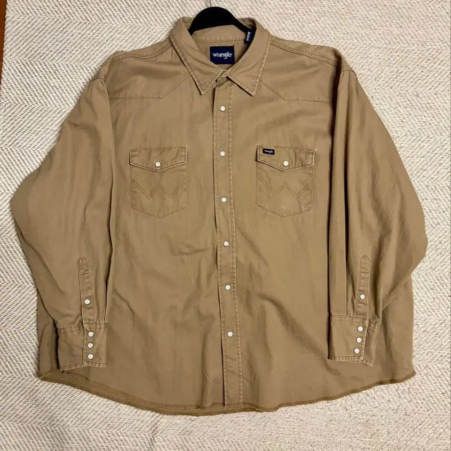 Wrangler 베이지 트윌 페이드 긴팔 웨스턴 셔츠 워크 셔츠