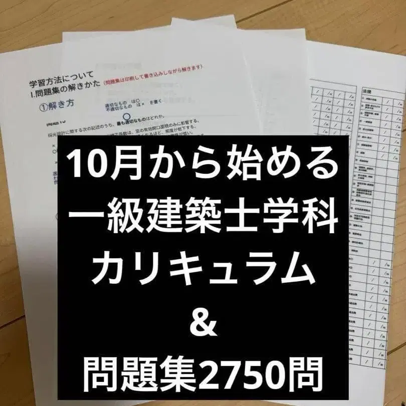 10월부터 시작하는 1급 건축사 학과 커리큘럼 & 문제집 2750문제 10월부터 시작하는 1급 건축사 학과 시험 합격을 목표로 하는 독학자를 위한 강력한 서포트 툴입니다. 팩 내용 1 오리지널 문제집 (PDF 데이터 포함 CD) 사지선다형 문제: 총 1750문제의 오리지널 문제로, 각 분야의 기초를 철저히 다집니다. 계획: 200문제 환경설비: 300문제 법규: 500문제 구조: 350문제 시공: 400문제 종합 문제: 각 과목 200문제, 총 1000문제. 실전 형식으로 실전력을 기릅니다. 이 총 2750문제가 PDF 데이터로 부속됩니다. 2 학습 방법에 대한 (학습 가이드) 본 팩의 효과를 최대한으로 끌어내기 위한 학습법을 상세히 해설합니다. 문제를 최소 3회는 반복해서 푸는 것을 추천합니다. 새로운 용지로 풀어야 하므로 A4 프린터가 필요합니다. ※ 이 학습법은 어디까지나 추천입니다. 자신에게 맞는 방법으로 문제집을 자유롭게 활용할 수 있습니다. 3 학습 스케줄 달력 합격에 필요한 최소한의 학습 내용을 달력 형식으로 보여줍니다. ※ 스케줄은 어디까지나 참고용입니다. 합격을 보증하는 것은 아닙니다. 4 학습 스코어 시트 각 문제집 및 기출문제의 성적을 기록하고 학습의 진행 상황을 '보이는화'할 수 있습니다. 학습을 시작하기 전에 본 팩의 커리큘럼을 학습하기 위해서는 다음의 교재를 별도로 준비해 주십시오. 11월 출시되는 자격 학교의 법령집 기출문제 (7년분) 초심자분들은 시판되는 텍스트가 있으면 이해가 깊어집니다. 이미 가지고 있는 것이 있다면 그것을 이용해 주십시오. 독학의 든든한 지원군 이 팩은 자격 학교의 교재와는 다른 완전 오리지널 문제가 최대의 강점입니다. 독학자는 물론, 자격 학교에 다니는 분들도 새로운 시각으로 학습을 깊게 할 수 있습니다. 이 학습 팩을 활용하여 내년 시험에서 합격을 쟁취합시다!