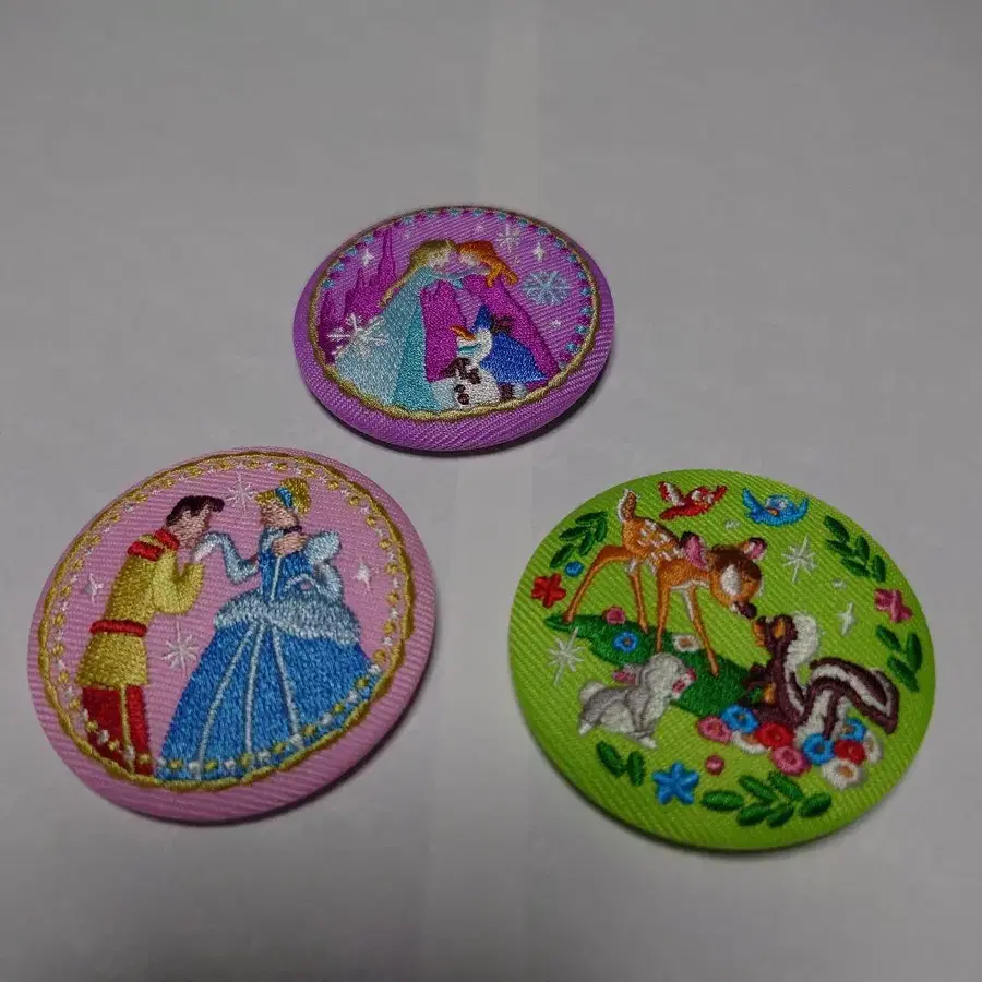 디즈니 프린세스 자수 핀 배지 3종 세트