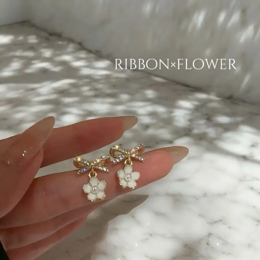 리본 꽃 골드 화이트 귀걸이 고급 한국 크리스탈 기프트