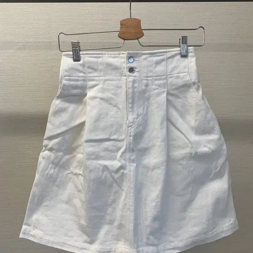 Ray BEAMS 화이트 데님풍 A라인 미니 스커트