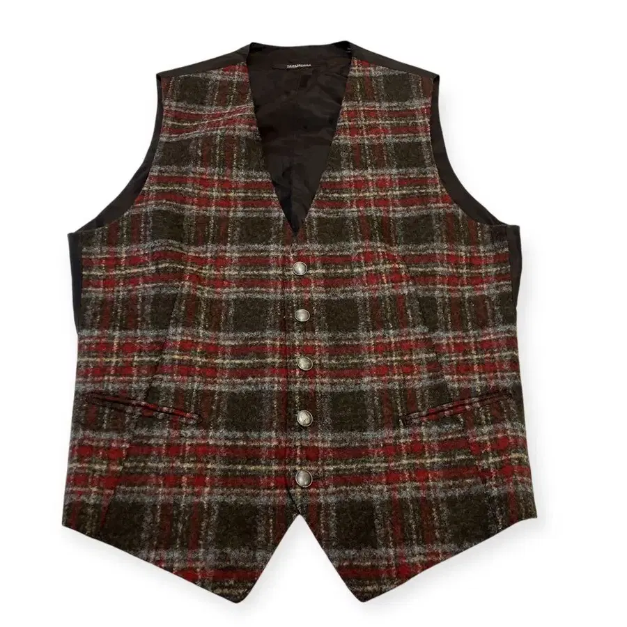 TAGLIATORE 베스트 (Brian/F) - 알파카 혼방 레드 타탄 체크 S~M 베스트