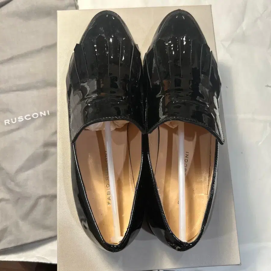 RUSCONI 블랙 에나멜 프린지 로퍼
