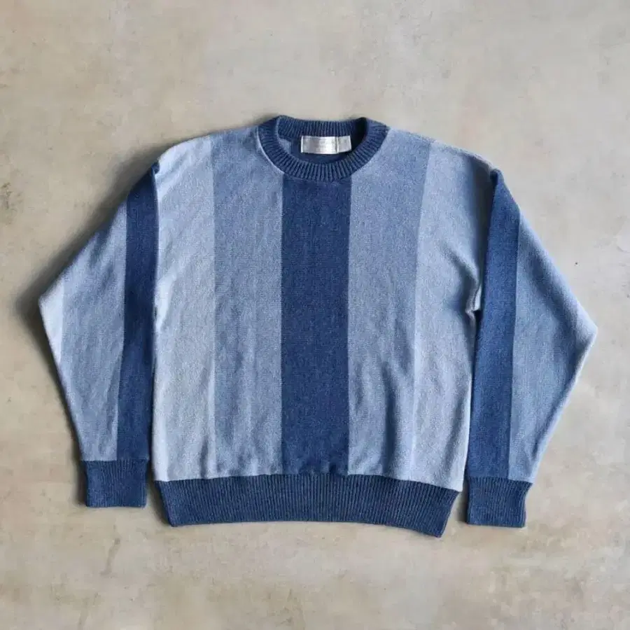 90s 스트라이프 코튼 니트 스웨터 L 블루 계열 USA 빈티지